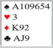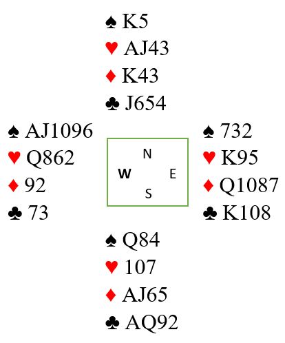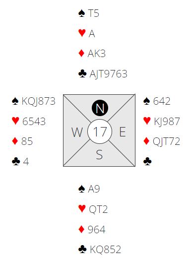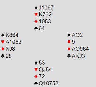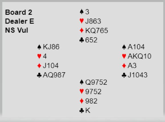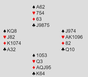 Dette var en soneutgang, og syd hadde vist 12-14NT uten hjerterstøtte før han ble plassert i 3NT.