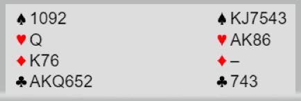 //Det blir bare elleve stikk i kløverkontrakt om N/S spiller det, litt uheldig for de som eventuelt melder 6 kløver.//