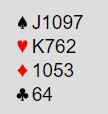 Terje Aa (vest) spilte ut spar knekt. Spillefører ba om kongen som vant stikket, så ruter til knekten på hånden som også stod fulgt av ruter til kongen. Vest la positiv Smith på ruterspillingen, så det er mye som tyder på at han har A-J-10 fjerde eller femte i spar. Så kommer liten kløver fra nord. Hva ville du lagt nå?