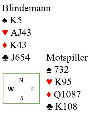 Noen vil nok doble opplysende, og jeg har ikke så veldig mye mot det. Vest har nok honnørpoeng til å kunne doble, og 3-3 i major, men det er antagelig bokmeldingen å passe med så mye i åpnerens farge. Makkeren har jo passet først og.