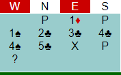 Vi som ser alle kortene vet at det er tre kløverstikk å hente. Det ser imidlertid ikke særlig lyst ut fra spilleførers synspunkt etter at sparfinessen gikk galt, selv om det er visse muligheter for en hjerter/kløverskvis, om da ikke kløveren sitter så gunstig at det kan vinnes tre stikk i den fargen.