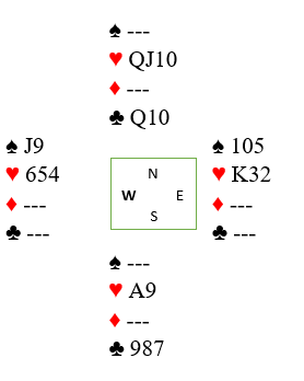 Spillefører må nå spille hjerter og lar forsvaret vinne første hjerterrunde med liten fra begge hender. Hvis hjerter ess sitter hos nord sitter det der i andre hjerterrunde og!
