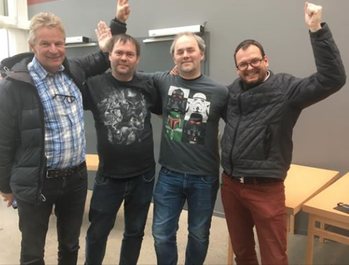 Gull- sølvlaget fra innbyrdes oppgjør i runde 7. Fra venstre Thomas Charlsen, Jan Petter Svendsen, Thor Erik Hoftaniska og Erik Sælensminde