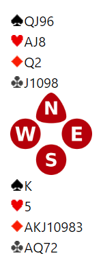Det som ser ut som en god ruterfarge er et svakt punkt for spillefører siden nord har tieren singel. Hvis en ruterhonnør fra forsvaret slår vekk esset og tar med seg den single tieren blir syds gjenværende ruterbeholdning sårbar med kun knekten og småkort under.