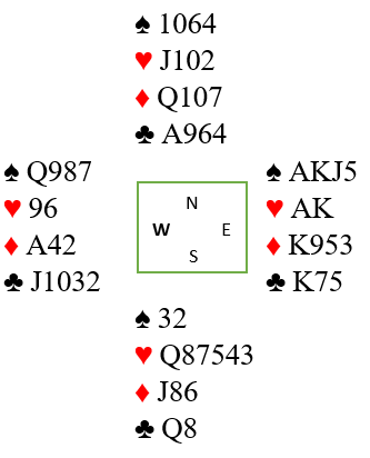 Å spille hjerter har den fordelen at om øst har hjerter ess har han ikke flere spar om vests utspill var «fake», dvs. fra femkorts spar. Men hvis vest har hjerter ess og mot formodning fem spar stikker han og tar to sparstikk – en bet.