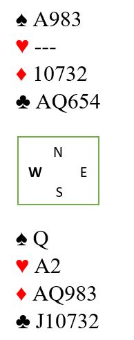 Ja, det er mulig å kutte forbindelsen til det andre kløverstikket. Da må vest med kløverhonnørene ha firekorts farge og følgelig makkeren ha kun to, og han med kun to kløvere må ha hjerter ess. En kan dukke første kløver, stikke den neste og spille hjerter. Da blir det utgang til bokføring om vest har hjerter ess og ingen flere kløvere da hjerteren hos nord gir avkast for kløver hos syd. Og slik satt det: