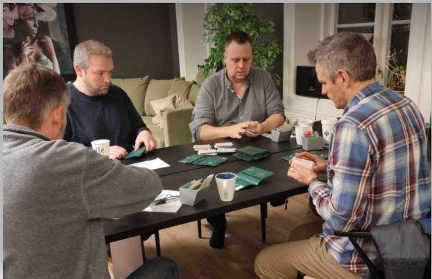 Etter lang tenkepause spilte Livgård kløver til esset, og der kom den single kløverkongen deisende! Pluss 1090, mens Studentene spilte 5 ruter ved det andre bordet.