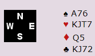Hva ville du meldt med disse kortene etter pass fra vest og nord, 1 kløver i åpning fra øst?