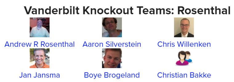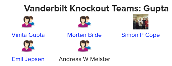 Som nevnt var det i det andre settet av fire lag ROSENTHAL med Brogeland og Bakke la grunnlaget for triumfen i Vanderbilt. De lå under med 1 IMP før det settet, og det startet litt kranglete i andre sett. Etter åtte spill (av 15 i settet) edet GUPTA med 6 IMP. Men så var det bare ROSENTHAL. På de syv siste spillene frem til halvspilt kamp scoret Boye og Christian sitt lag 40 ubesvarte IMP: