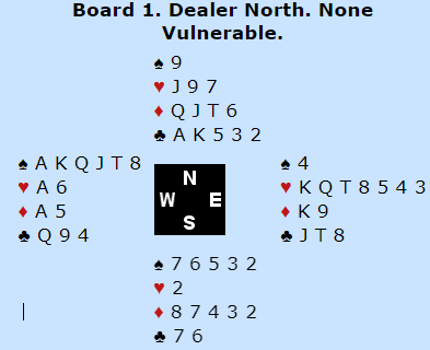 Det var som du ser to rutertapere, men Boye spilte spar fra topp og løste dermed trumfen uten taper, ti stikk og +620.