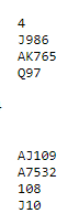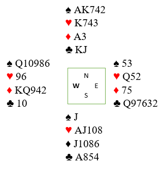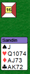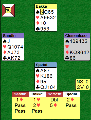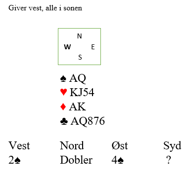 Det kan hende det ved noen bord kom innmelding, eller hoppinnmelding i spar fra nord. Han har liten poengstyrke, men fin fordeling og det er langt i fra galt å melde selv i sonen.