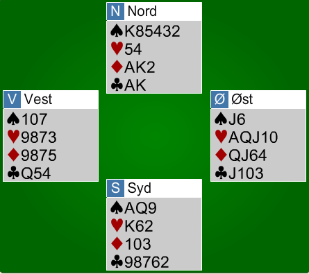 Kanskje ikke, men hvis øst hadde åpnet med 1 ruter ville i alle fall Ø/V vært utenfor fare .