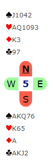 Lag De BOTTON fikk skryt i bulletinen som et morsomt lag å følge. Masse underholdende bridge, og dette spillet fra runde 5 var ikke noe unntak.