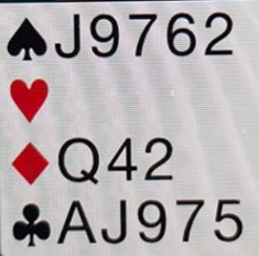 Det norske paret hadde altså meldt utgang og blitt doblet, og ta en titt på øst sine kort, han har 14 HP mot makkerens grandåpning! Honnørpoeng er imidlertid ikke alt her i verden…