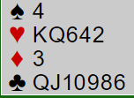Vel, det var ikke over helt, for husk at vest ikke ser nord sine kort. Idet ruter knekt vant første stikk hadde Hackett et problem. Hvis han spiller en stor ruter i andre stikk (for eks. kongen) blokkeres ruteren hvis ikke øst stikker over! Og om øst stikker over blir nords ruter 10 stopper. Mange spiller jo ut liten fra tre små i makkers farge (og nord A10xx), og om øst har det kan liten ruter tilbake koste stikk. Hackett brukte en del tid før han spilte ut til andre stikk, men til slutt spilte han liten ruter tilbake. Øst måtte da bruke esset, ikke åtteren som han kunne vunnet med (blokkerer i så fall med esset singel gjenværende). Han fant det motspillet, stakk med esset og de fikk fatt i fem ruterstikk - en bet.