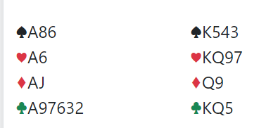 I A-finalen spilte Bakke-Brogeland i mot 3NT og fikk tak i en bet etter sparutspill fra øst. Det ga 67%.