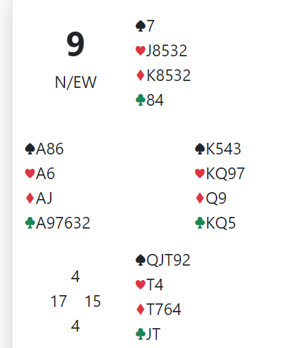 Ved det ene bordet spilte Rosenthal-Silverstein 5 kløver som Ø/V og vant elleve stikk, +600. De kom komfortabelt med i meldingene etter Multi-2 ruter fra nord og 2 hjerter, pass-korriger fra syd.