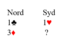 Du har altså svart 1 hjerter over makkers åpning 1 kløver. Så kommer han tilbake med 3 ruter. Hva betyr det?