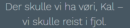 - Det meste foregår vel på hotellet, men husk at det er litt skummelt i den skråninga bortenfor hotellet der. Å surre rundt der i mørket behøver ikke gå så bra. Å snuble i en trerot og ramle nedover der gjør vondt, det viser all erfaring. Og særlig hvis det kommer noen ramlende bak deg og lander på deg i tillegg...