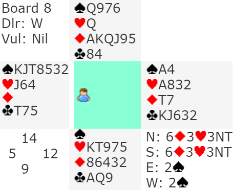 Da spillet forekom satt imidlertid sparen 3-2, så all den tenkingen omkring den mulige taperen var unødvendig, tretten enkle stikk.