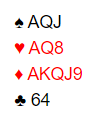 Enten kan fire hjerter sitte sammen med fire/fem kløver som vil bli for mye å passe på for en motstander. Eller en av dem kan ha tre spar og fire hjerter, eller tre spar og fire kløver. Hvis det er slik (en motstander har to av holdene) kan det bli litt gjetting for spillefører med hensyn til timingen, men siden syd i dette tilfellet har alt, tre spar, fire hjerter og også er alene om kløverholdet blir det voldsomt pustebesvær for han tidlig i spillet. Nord blir sittende bare å se på og kan ikke hjelpe makkeren med noe som helst.
