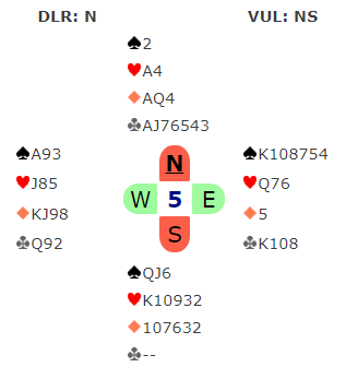 Dette var skivebom av nord. Kontrakten 5 kløver ble ikke noen fest, og da røyken hadde lagt seg hadde spillefører gått 800 i bet.