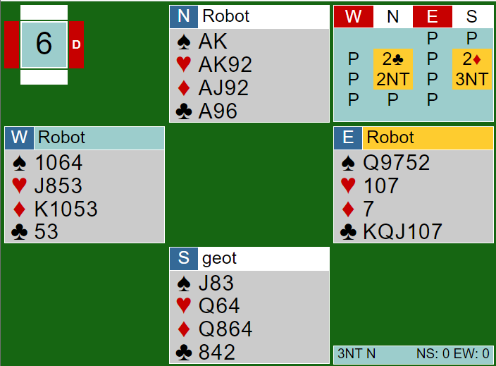 Midtveis i halvrunden kom dette spillet hvor Geir satt øst og skulle spille motspill: