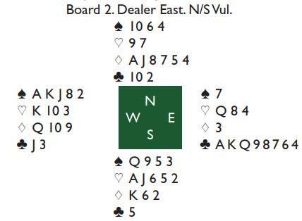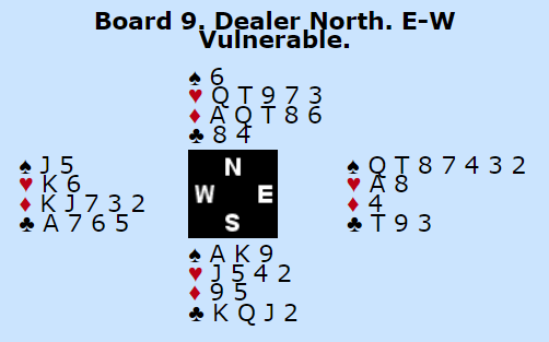 Da Buras fortsatt var inne og så at det ikke var noen særlig fremid for motspillerne i hjerterfargen skiftet han til ruter 2 i andre stikk. Dermed tok de seks ruterstikk i tillegg til hjerter ess, tre bet og +150. Det ga vinnerparet 82% på spillet.