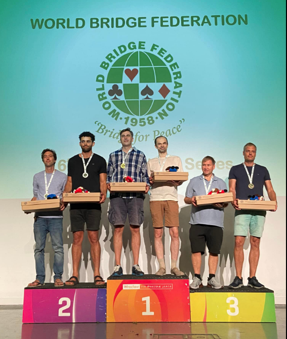 I World Series i Wroclaw, Polen ble det svensk-norsk medalje i OPEN PAIRS da Fredrik Nystrøm og Geir Helgemo kapret bronse i et jevnt og spennede medaljerace. Klare vinnere ble imidlertid polske Buras-Lutostanski. De var over 4% foran nr. 2 som ble Nabil Edgtton (Australia) - Michael Whibley (New Zealand). Mange par var i bildet i medaljekampen. Helgemo-Nystrøm var kun en halv prosent bak paret fra Down Under, og kun 0,24% foran de som ble nr. 4.