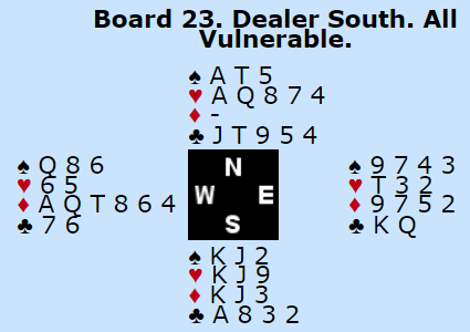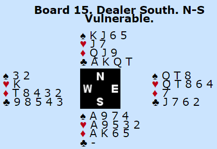 Dessuten var det slik at med sitsen i ruter og hjerter står ikke lilleslem til Ø/V verken i hjerter eller kløverkontrakt, så en stamp i 6 spar er mot en lilleslem som ikke står.