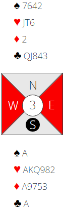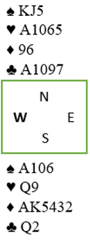 Vest sin gjenmelding 1NT viste 12-14 balanserte.
