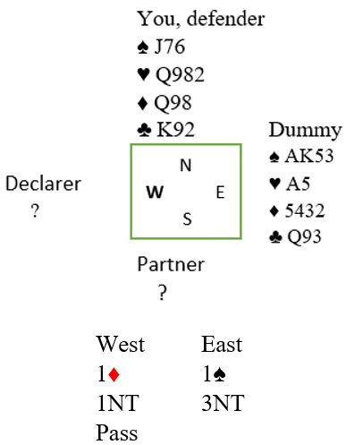 Etter din grandåpning melder makker Stayman før han sier 3NT over ditt 2 ruter-svar på 2 kløver. Fra vest kommer en liten spar i utspill.