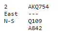 Det ser ut som det er åtte eller ni greie stikk i sparkontrakt med en taper i trumf hvis ikke spillefører finner på noe «fancy» i den fargen, en taper i hjerter og en i kløver, og så et valg i ruter som kan gi to tapere om det bommes, likevel åtte stikk.