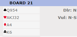 Siden ruter Q-10-x var plassert hos nord hadde ingen slem noen sjanse, og det ble 13 IMP ut i stedet for 13 inn - 26 IMP i sving - om kortgudene hadde vært på vår side. Det tålte vi akkurat ikke da vi manglet ca. 12 IMP for å gå til topps.