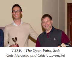 Pierre Zimmermann vant sin egen turnering Zimmermann Cup da hans lag SWISS TEAM beseiret GUPTA med bl.a. Geir Helgemo på laget i finalen. SWISS TEAM fikk et overtak i andre sett og hold unna. Seiersmarginen til slutt ble på 24 IMP.