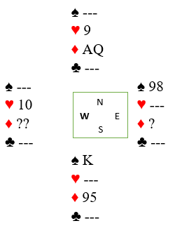 I dette tilfellet, hvis makker er med på den avtalen betyr det at syd hadde Q-10-2 fra start idet makker altså la spar 9 i andre stikk. Vi bør derfor spille en tredje runde spar til stjeling.