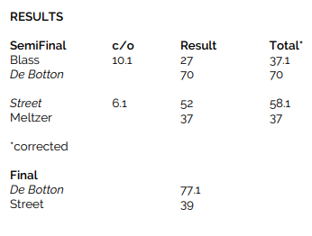 Det engelsk-norske laget De Botton vant finalen i ALT INTERNATIONAL, den internasjonale lagturneringen som ble spilt på BBO denne uken. De slo lag STREET med 38 IMP i kampen som gikk over tre sett x 12 spill.