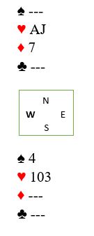 Du sitter altså øst og skal spille mot syds 4 hjerter. Makker spiller ut spar knekt til liten fra nord, din konge og syds toer. Du fortsetter med spar ess, spillefører legger damen og din makker følger med spar 9.
