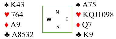 Siden øst har meldt inn er det en god sjanse for at hjerter ess sitter foran kongen. Da blir spillet veldig uinteressant, du kan ikke tape mer enn til trumfesset, til hjerter ess (en hjerter kastes på kløver ess) og kanskje ett ruterstikk hvis den fargen sitter 4-1 som utspillet kan tyde på. Men om det er to hjertertapere er det fare for bet om ruterfargen sitter skjevt.
