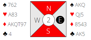 Siden sparfinessen gikk, trumffinessen gikk, og rutereren satt 2-2 stod 5 ruter doblet etter sparutspill fra vest.