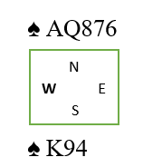 I diagramsituasjonen spilles spar til kongen og hjerter til tieren. Vest stikker, men så må han spille spar til saksen, eller hjerter til saks. Spiller han hjerter får du for knekten og kan ta esset med sparavkast.