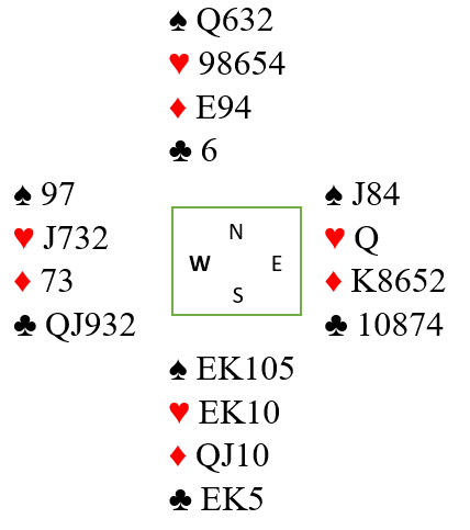 Syd tenkte ikke slik og spilte ut hjerter. Hele spillet så slik ut: