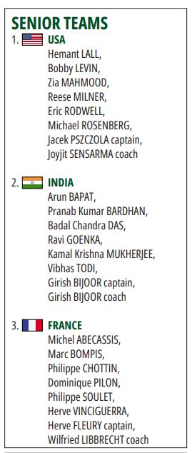 USA leder med 39 IMP mot INDIA i seniors, og KINA leder med 28 IMP mot POLEAN i mixfinalen.
