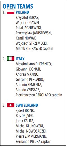 SVERIGE leder med 7 IMP mot TYRKIA i damefinalen. Så ingenting er avgjort i den klassen, og det er det heller ikke i de andre klassene selv om det så ut til å være avgjort i OPEN hvor Italia hadde fått opp en ledelse med 88-24 (64 IMP) etter to av gårdagens sett mot POLEN. Men så kom et sensasjonelt comeback av polakkene: