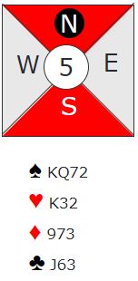 Mens vi venter på EM-starten kan vi ta med et spill som forekom i Larvik-mixen som ble vunnet av Lise Marie Gabrielsdatter og Finn Åge Jahnsen. Det var parturnering, men dette spillet ville vært svært viktig og skapt store svingspill i lagkamper også. Se først på syds fordelingshånd og ta stilling til hvordan det bør meldes: