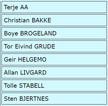 De seks øverste spiller mens Tolle Stabell blir lagets non-playing captain (NPC) og Stein Bjertnes coach. Vi håper og tror på at dettee laget kan forsvare medaljen fra 2022, og hvorfor skal de ikke kunne klatre en eller to plasser høyere på pallen?