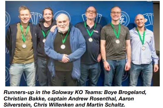 I San Francisco hvor US FALL NATIONALS fortsatt pågår har akkurat nå (torsdag kveld norsk tid) finalen i SOLOWAY KNOCK OUT TEAMS startet. Der spiller ROSENTHAL med Brogland og Bakke på laget sammen med tre amerikanere og danske Martin Schaltz.