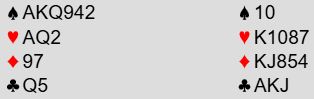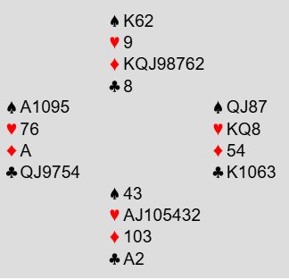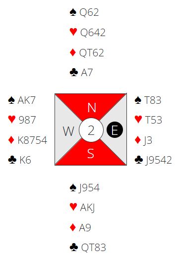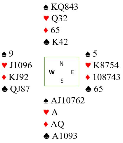 Når en skal spille denne kontrakten (7H) vil det neppe gå fort, for det står mye på spill, og spillefører aner ikke at samme hvordan det spilles blir det tretten stikk siden både spar- og ruterfargen gir fire stikk helt av seg selv.