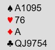 N/S kan i teorien alltid vinne ti stikk i hjerterkontrakt. Og det blir det fort i praksis også etter enten spar konge i utspill, eller ruterutspill, fargen vest trolig meldte ved alle bord. Det kan være mulig å gå bet i 4 hjerter om øst skulle finne et usannsynlig kløver ess i utspill fulgt av kløver til stjeling, så sparskift. Da må spillefører tippe hjerteren som etter den starten er knekten singel hos vest og K-3 dobbel hos øst. Damen må spilles slik at vests gjenværende single knekt "pinnes" ut. Da får ikke forsvaret flere trumfstikk enn den ene stjelingen. Hvis det etter en slik (usannsynlig start) spilles hjerter ess tapes dog ett stikk til i trumf og ett stikk i spar, og i så fall blir det kun ni stikk. I kløverkonrtakt N/S blir det en taper i spar og en i hjerter i tillegg til kløver ess.