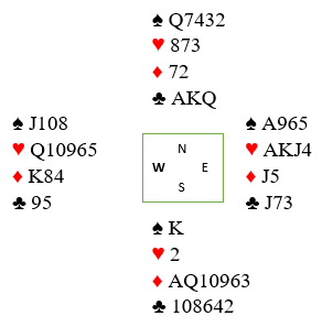 Våge (syd) oppvurderte syds gode 19-poenger til en 20-21 grand. Det var greit at makkren da tok en konservativ "view", han overførte til spar og foreslo kun 3 grand som ble kontrakten. Riktignok er ikke slem så dårlig, om kløverfinessen går bra er det svært gode sjanser.